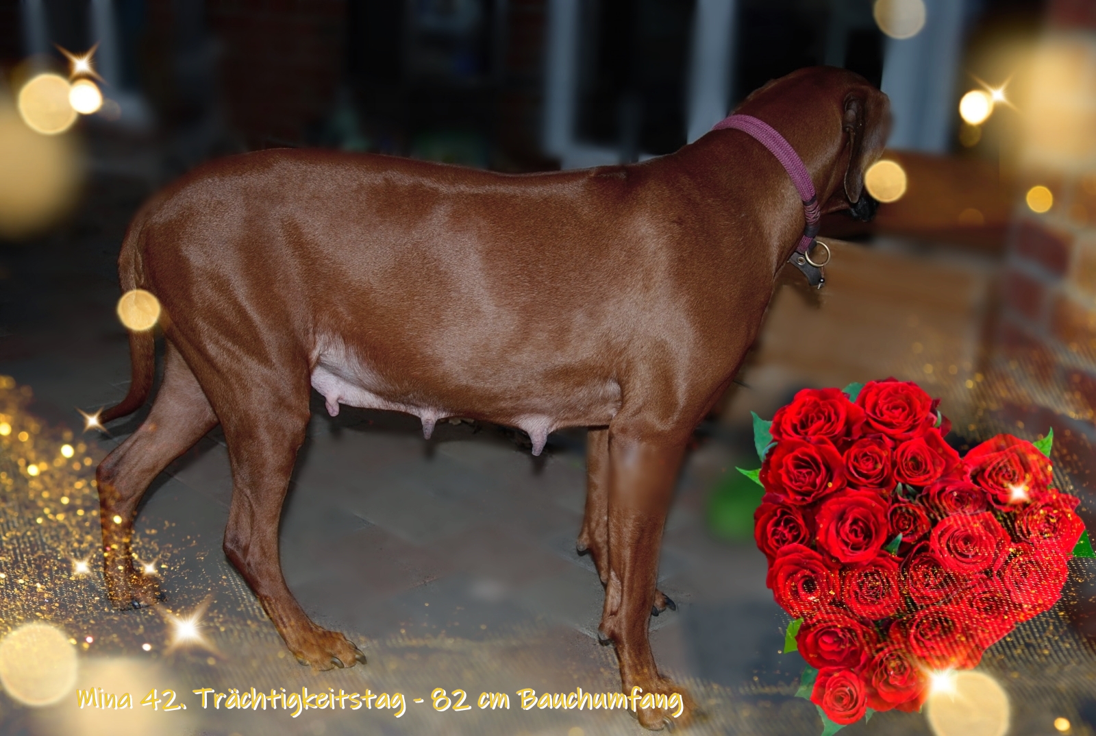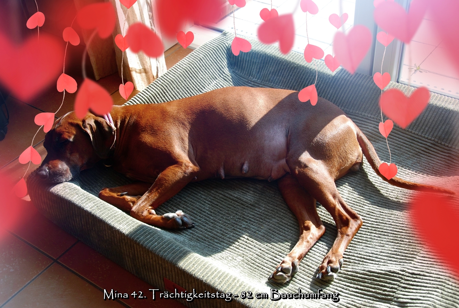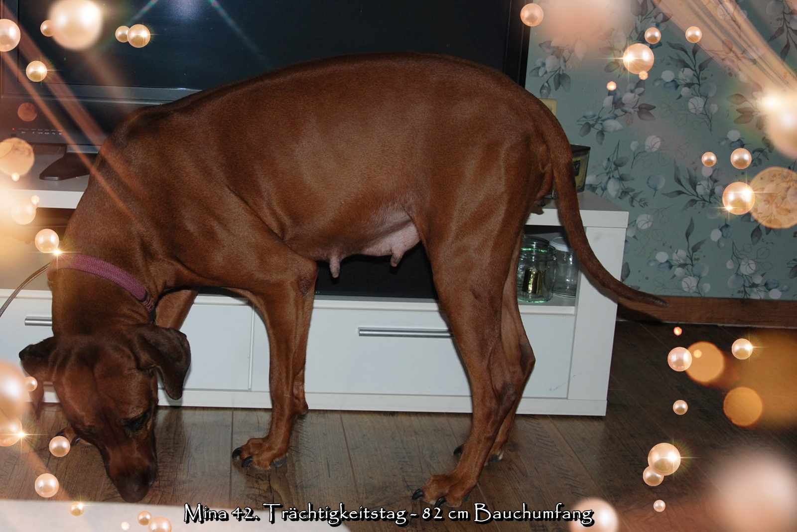 Sie hat heute ihren 42. Trächtigkeitstag und einen Bauchumfang von 82 cm (+24 cm)