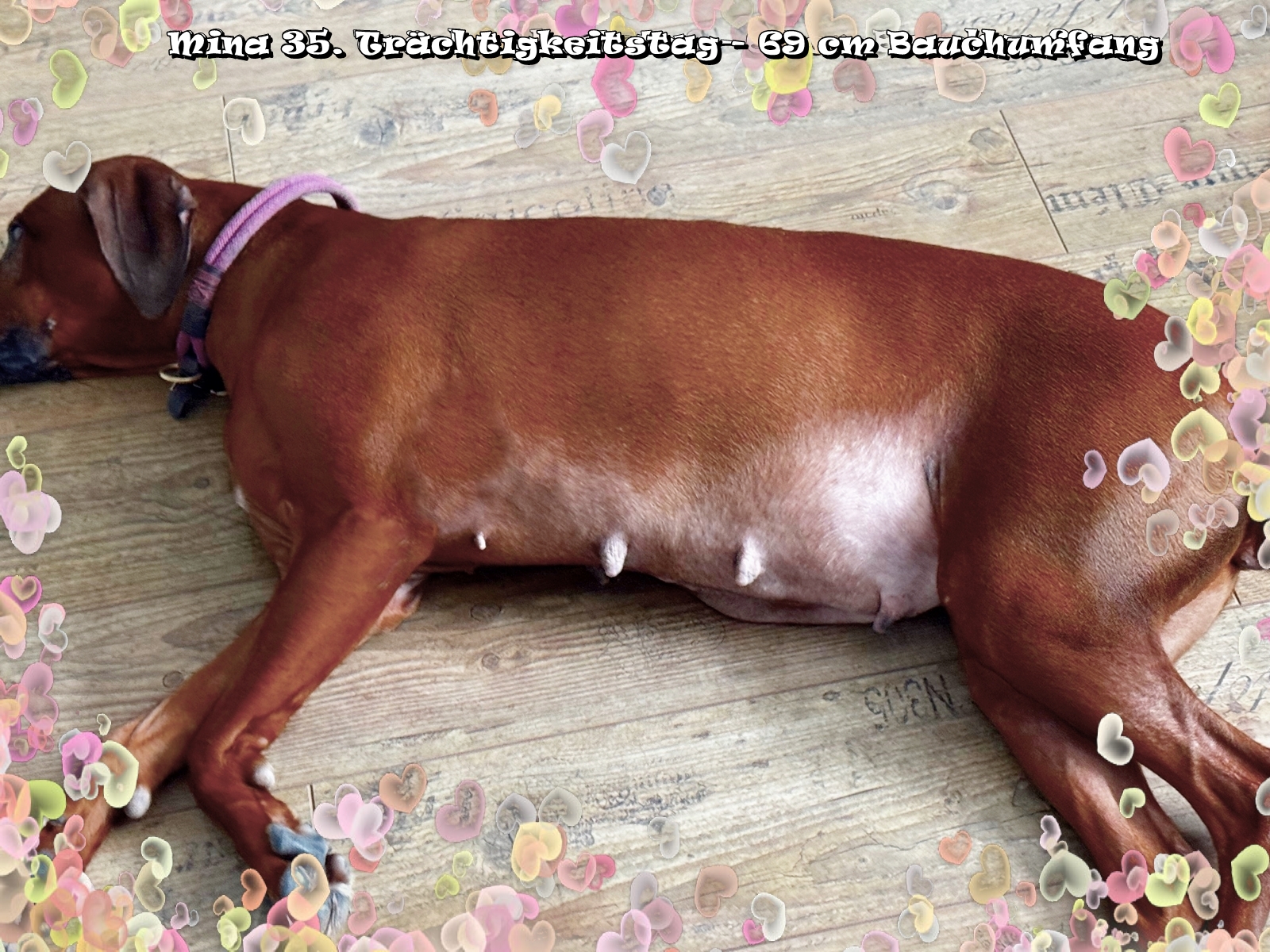 Mina hat aktuell einen Bauchumfang von 65 cm (+ 6 cm) am 24. Trächtigkeitstag.