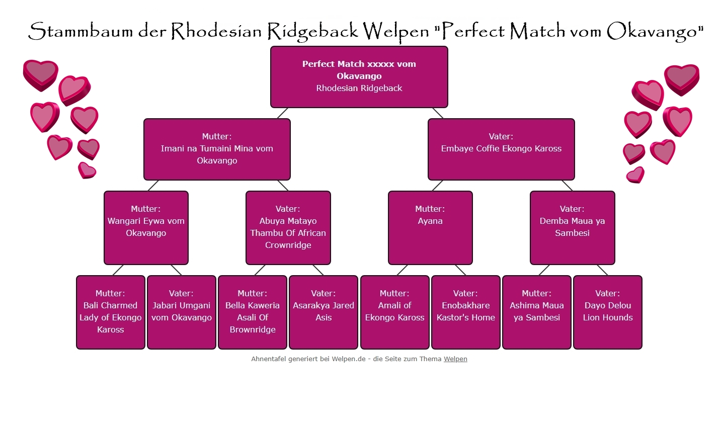 Hier können Sie schon mal die Abstammung der erwarteten “Perfect Match” Welpen sehen …